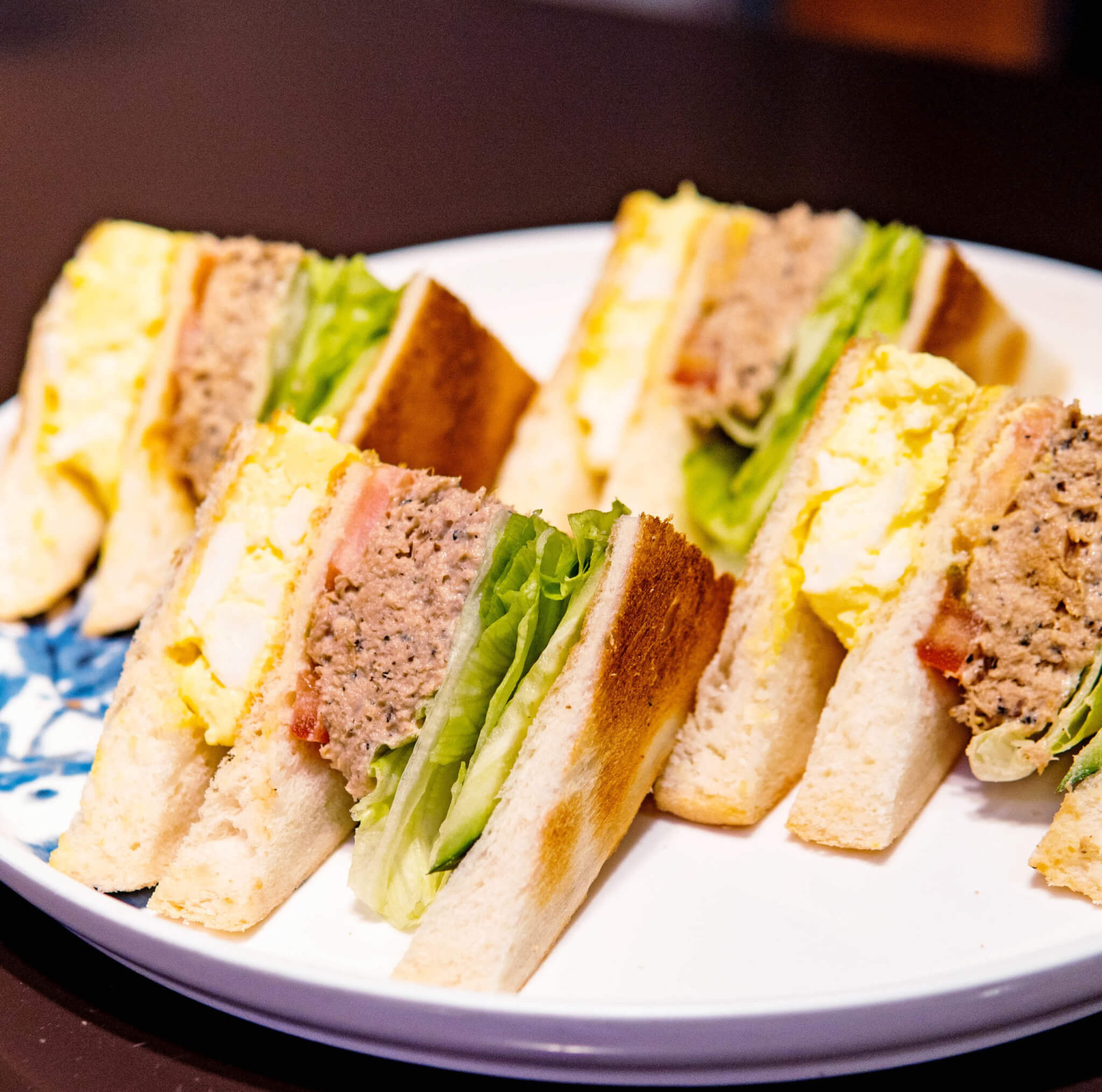 鮪魚沙拉、蛋沙拉、生菜、番茄、小黃瓜、吐司。