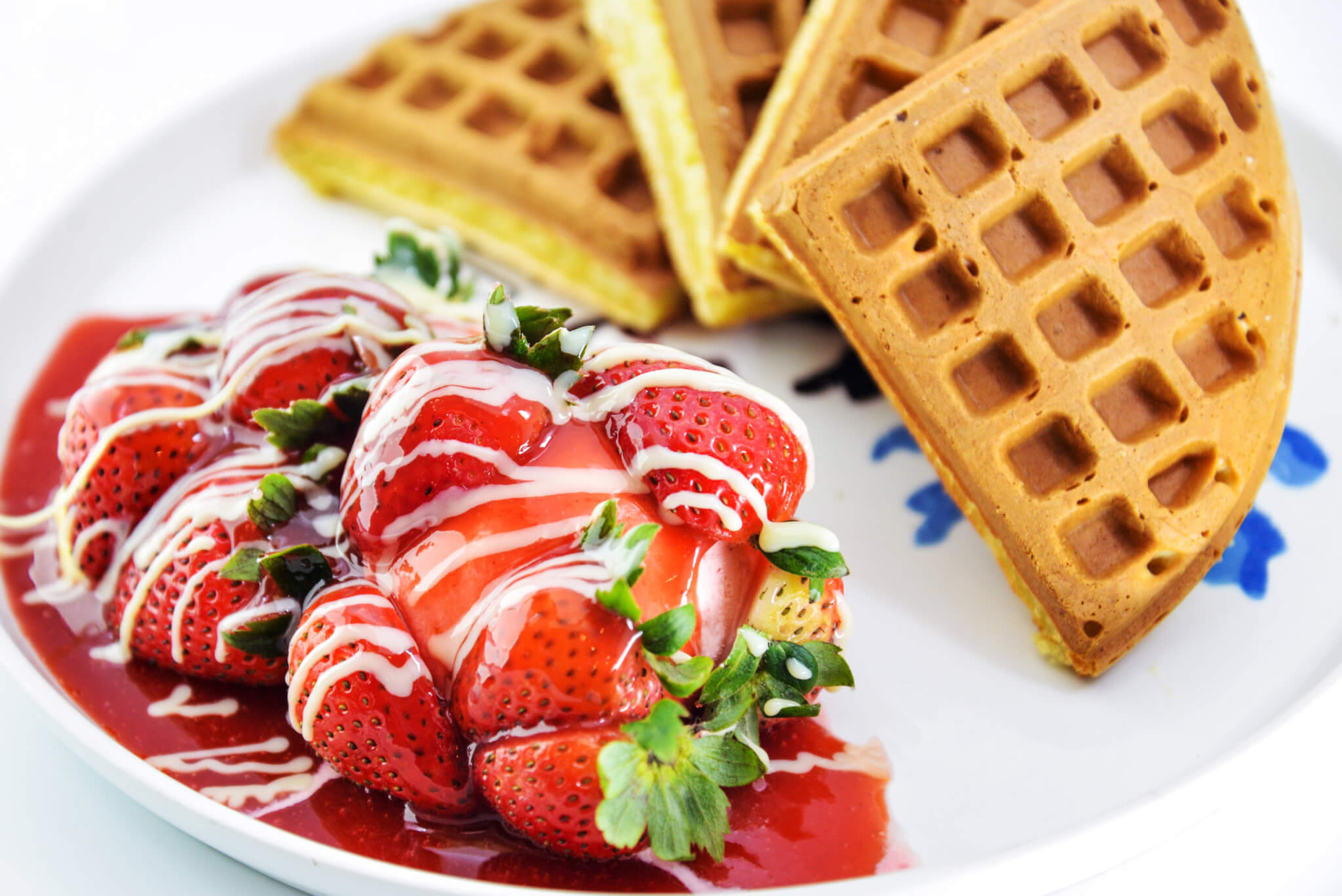 新鮮草莓、奶油卡士達、草莓冰淇淋、法國草莓果泥、煉乳醬、鬆餅